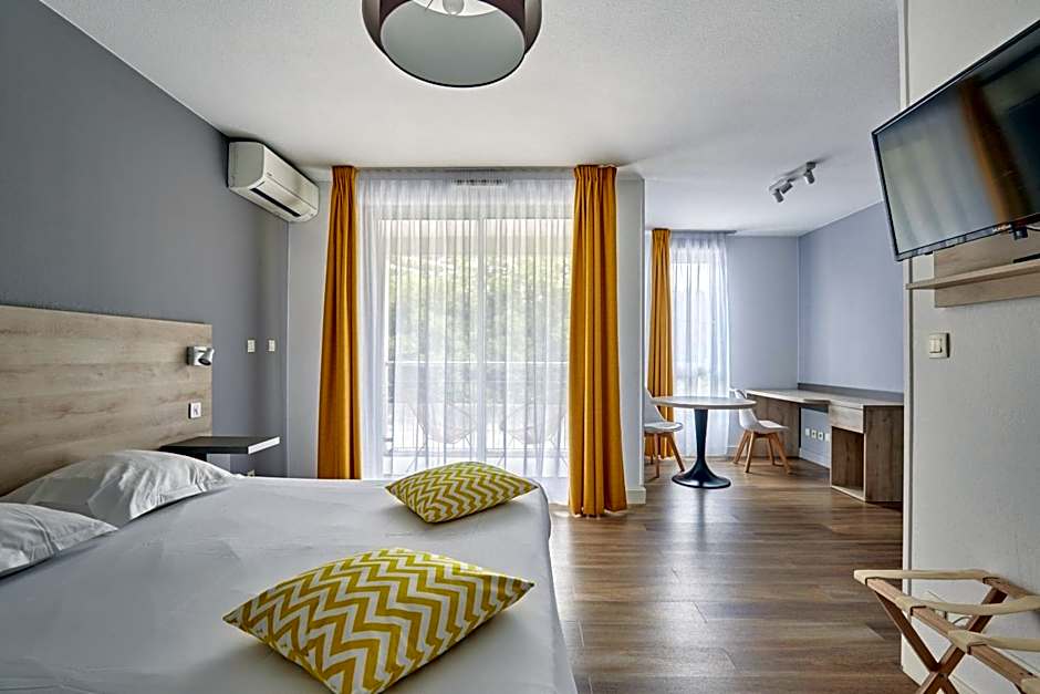 Indulge in the sumptuous comfort and well-equipped amenities of the hotel's cozy rooms. Each room features thoughtful touches such as a kitchenette, balcony, and private bathroom, ensuring a peaceful and enjoyable stay. The soundproof rooms provide a haven of tranquility, where you can fully unwind after a day of sightseeing around the picturesque city. The well-furnished accommodations have received high praise from guests, making them the perfect choice for a restful and rejuvenating experience in Aix-en-Provence.